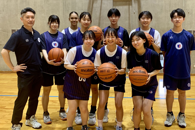Basketball女子バスケットボール 顧問の先生の他に元プロバスケ選手のコーチが週2回スキル指導を行っています。その成果もあって春季関東大会東京都予選では3回戦まで進むことができました。東京都ベスト8を目標に日々楽しく真剣に練習しています。ぜひ一度体験に来てください。